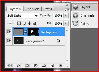 Now set the foreground color to white, then choose the brush tool. Choose a soft brush, (this creates a blending effect) and choose a brush size accordingly so that when you paint over the image it will reveal only the parts of the layer that you want to be revealed in the "masked" layer. (now try clicking the layer on and off to see the result.) You can also set the opacity of the brush so that it takes multiple strokes to totally reveal the parts of the hidden layer that you like, or you can leave the opacity at 100%, and adjust the opacity of the final result in the layers pallet box before merging the layers. When finished, just "flatten" the layers.